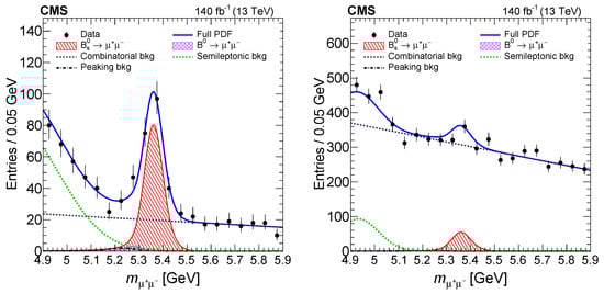 - CMS Collaboration; Sirunyan, A.M.; Tumasyan, A.; Adam, W.; Ambrogi, F.; Bergauer, T.; Brandstetter, J.; Dragicevic, M.; Erö, J.; Valle, E.D.; et al. Measurement of properties of → μ+μ− decays and search for B0 → μ+μ− with the CMS experiment. J. High Energy Phys. 2020, 4, 188. [Google Scholar] [CrossRef]