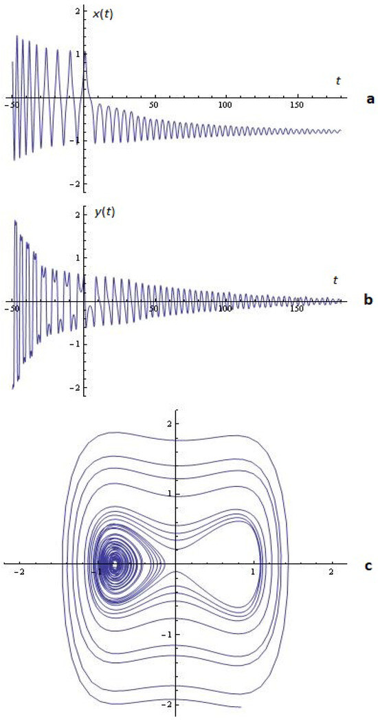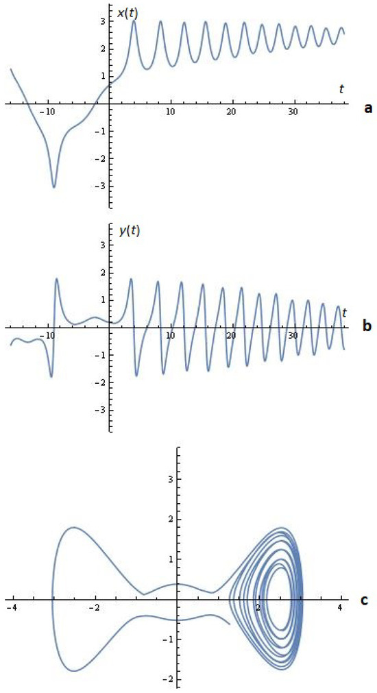 is shown in Figure 10. In [32], the authors study the resonant oscillation and the homoclinic bifurcation in a —Van der Pol oscillator. Following the ideas given in [32], we obtain the Hamiltonian system for for our model (2) through a pair of heteroclinic orbits defined as (Figure 11b)