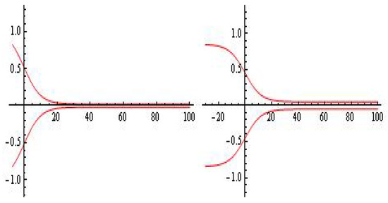 Example 5. With the fixed values of the parameters from Example 5, but with the special choice of the parameters of the form: and , the simulations on system (2) for ; are depicted in Figure 13.