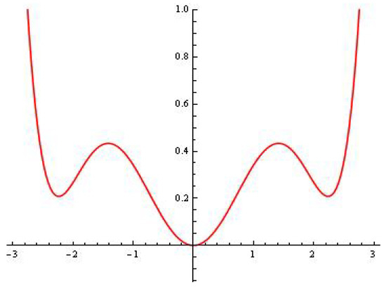 For example, for and , the root of the nonlinear Equation (6) is with multiplicity two (see Figure 3).