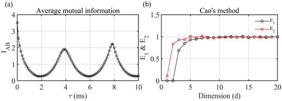 (a) AMI method and (b) Cao’s method for phase space reconstruction.