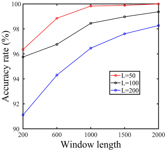 The analysis of thermoacoustic combustion instability reveals that the parameters governing linear analysis—specifically, the length of the time series and the step size (L) of the time window movement—significantly influence prediction outcomes. By systematically varying these parameters, with the selection of five window lengths ranging from 200 to 2000 and three step sizes (L = 50, L = 100, and L = 200), the experiment in Figure 10 exposes crucial trends. Notably, an increase in window length correlates positively with enhanced prediction accuracy, as longer windows capture finer details of combustion instability dynamics. However, this improvement comes at the expense of longer computation times. It is vital to strike a balance, as excessively long windows, while yielding higher accuracy, may introduce challenges in practical applications, potentially leading to errors during state transitions. Additionally, the experiment highlights that larger step sizes result in diminished prediction accuracy, emphasizing the trade-off between capturing crucial information and maintaining high prediction precision. Achieving an optimal configuration of these parameters is essential for the effective real-world application of thermoacoustic combustion instability monitoring.