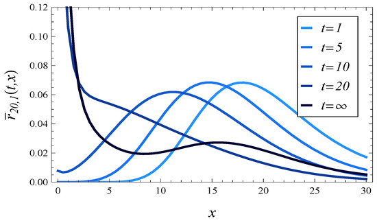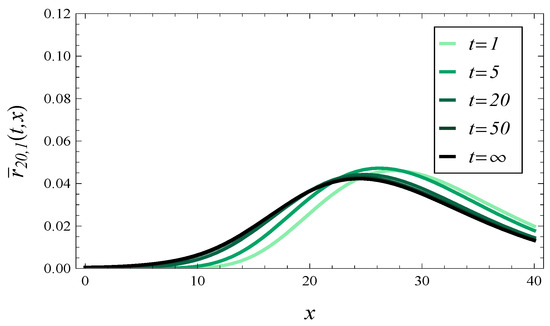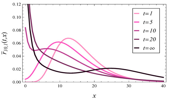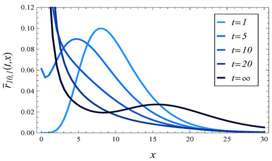 As we can see, is a time-dependent characteristic, i.e., a function of t. Computing for a small t, say , we can characterize the response time of the system shortly after its activation, when its operation depends severely on its initial state.