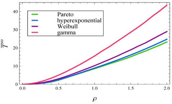 In Figure 11, the mean response time in steady state is depicted for all four considered service time distributions as a function of .