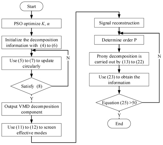 The identification accuracy and algorithm performance of the traditional Prony algorithm are greatly affected by noise, and the fitting effect of signals with low SNR is poor, resulting in the failure to accurately identify the characteristic parameters of signals. In addition, it is difficult to select the optimal decomposition parameters of the VMD decomposition algorithm, which can lead to the unsatisfactory signal decomposition effect and, ultimately, affect the signal denoising effect. Therefore, this paper adopts a new method combining particle swarm optimization (PSO), VMD and the Prony algorithm to analyze harmonic signals. The basic steps are as follows: