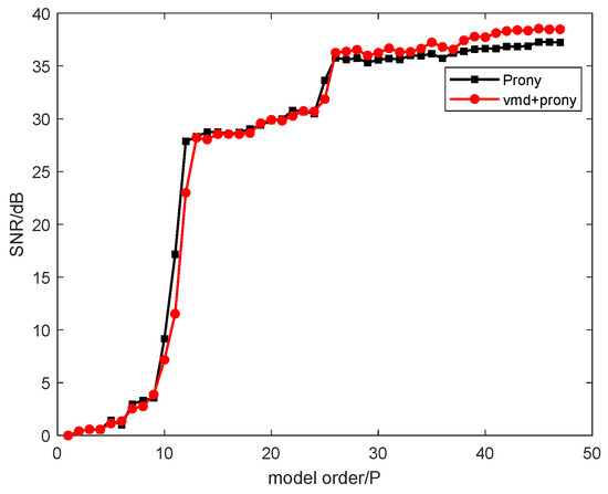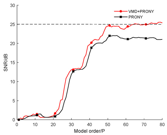 Under the condition of the same model order, the SNR results obtained by Prony analysis of different signals are shown in