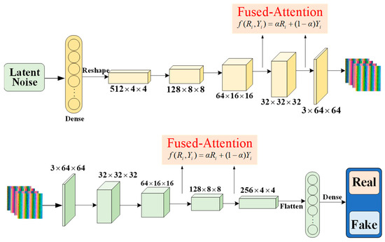 - The fused attention (FA) mechanism is proposed, which employs a weighted fusion approach to integrate features extracted using a lightweight channel attention mechanism and the improved self-attention mechanism module, facilitating the extraction of important features from global, local and channel levels to enhance the quality of the generated samples.
