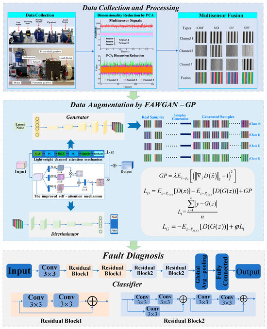 - To address the limitation posed by single-sensor incomplete information and the challenge of limited fault samples, a novel fault diagnosis method for rotating machinery with limited multisensor fusion samples is proposed based on the proposed model FAWGAN-GP.