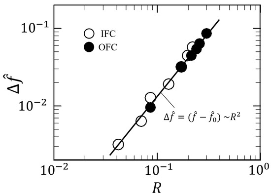 where of the initial jet flow and of the external swirling flow are combined into . When the flame has no swirling flow (), Equation (15) can degenerate into that of Xia and Zhang [30]. Therefore, we can obtain the frequency increase of flickering flames in weakly swirling flows as