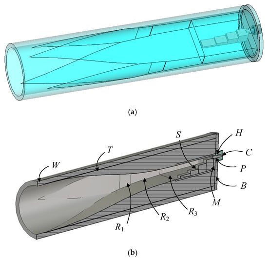 - Solak, B.; Secmen, M.; Tekin, A. The design of a high gain dual-polarized quad-ridged circular horn antenna for wideband EMC test applications. Appl. Comput. Electromag. Soc. J. 2018, 33, 1009–1017. [Google Scholar]