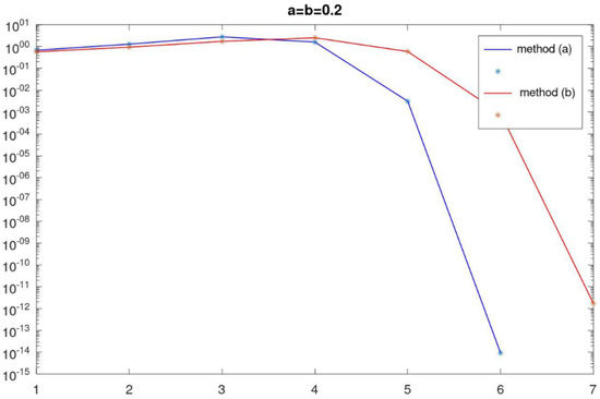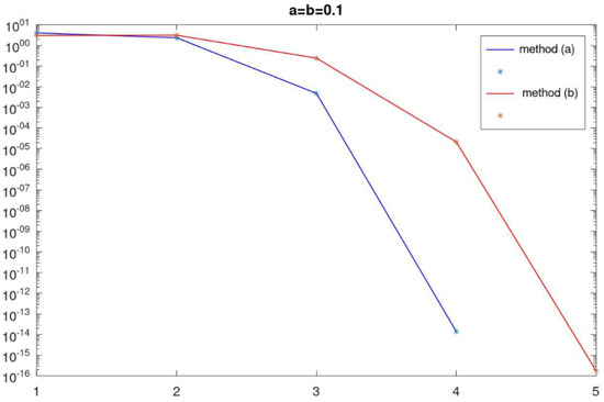 Let us compute the radii of convergence for the Algorithm 1 for different values of the real parameter a and b. For this, consider the following nonlinear equation.