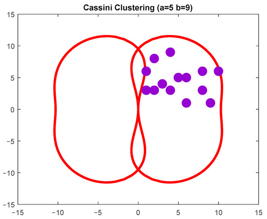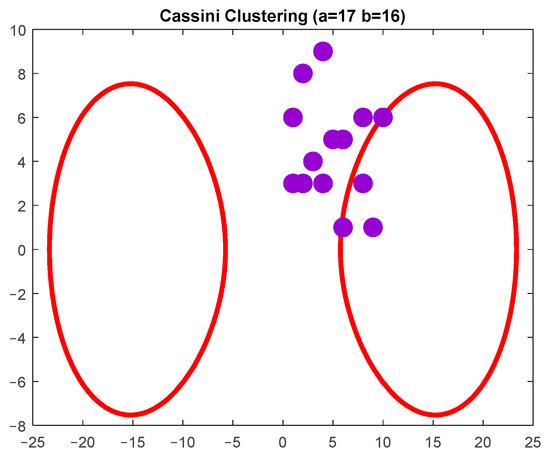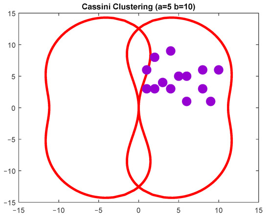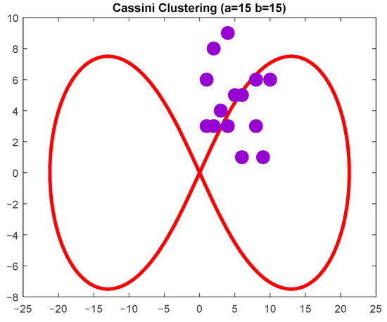The possibility of using clustering for Cassini ovals is worth a separate study [19,20,21]. One study has already investigated clustering using ovals [22], which was the basis of this research. Similar articles on the subject were not found anywhere. This paper is an extended study of the capabilities of Cassini ovals to determine their suitability for clustering purposes.