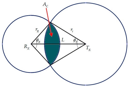 The intersection of the two circles determines the common coverage area (for ) is the following: