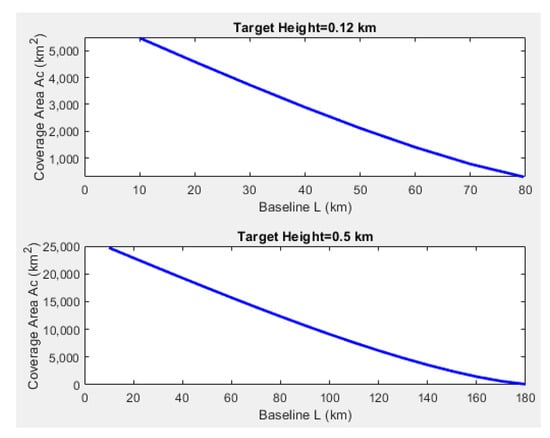 Dependence of coverage on the baseline distance (target height = 0.12 km and 0.5 km).