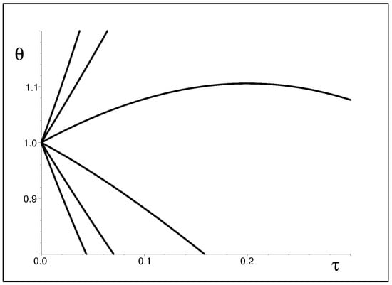 In the algebraic terminology of the study in [36] and of the older literature [43,44,45], one encounters the so-called Kato’s exceptional point (EP) of the th order at . In [36], we restricted our attention to the models with small s, therefore. We found that Equation (16) may be further reparametrized in terms of another time variable t which has been found to measure a recovery from the QC singularity in a broader physical multiparametric domain ,