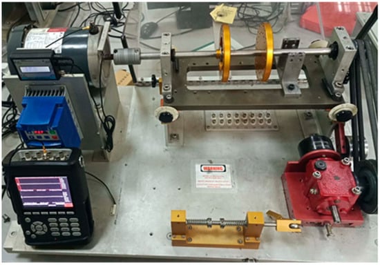 Case 2 of this article utilizes the XJTU-SQ dataset [39,40,41]. This dataset involves the simulation of faults in the inner and outer races of motor bearings using SQ’s comprehensive mechanical fault simulation test platform. The bearings used are NSK 6203 bearings. The bearing faults are artificially created using a grinding pen. The dataset includes normal vibration signals as well as motor bearing vibration signals collected for three different levels of inner race faults and three different levels of outer race faults. The test platform consists of three main components: the motor, the rotor, and the load. Piezoelectric acceleration sensors are used to collect the vibration signals of the motor bearings, with a sensitivity of 50 mv/g. The data acquisition device used is the CoCo80. The signal sampling frequency is 25.6 KHz. In the dataset, the rotation frequency of the bearings with three degrees of failure of the outer ring and a high number of incidences of failure of the inner ring is 19.05 Hz; the rotation frequency of the bearings with a moderate number of incidences of failure of the inner ring is 19.01 Hz; the rotation frequency of the bearings with a low number of incidences of failure of the inner ring is 19.07 Hz; and that of the normal bearings is 19.46 Hz. The XJTU-SQ bearing experimental platform is shown in Figure 16.