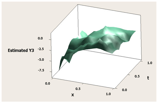 Hereinafter, based on the results of the simulation study, we obtained the surface plots of the estimation results of the MMNR model presented in Equation (56). These surface plots of the estimated MMNR model are presented in three-dimensional plots (see Figure 4, Figure 5 and Figure 6).