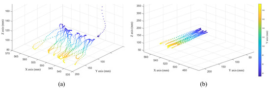 End spatial position data of the “small operation/straight line” action primitive (a) original data; (b) after preprocessing data.