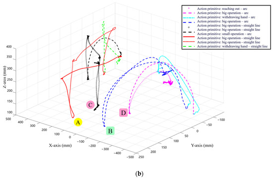 According to the GMR algorithm, further processing is performed on the teaching data. For example, the action primitive “large operation/arc” in the XOZ plane is shown in Figure 7.