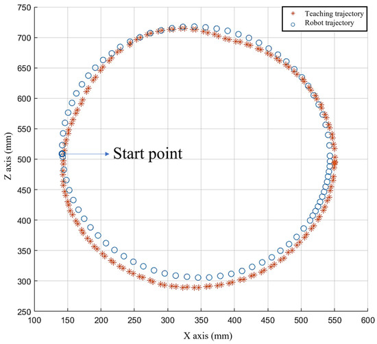 Teaching trajectory and actual running trajectory of robot.
