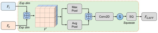 where upscales the size of the feature from ( to , and the feature dimension of is . Maximum pooling and average pooling are then used to operate on the last dimension. Feature fusion is then performed using Conv2D and a sigmoid function. The size of the feature is compressed into using a squeeze operation to complete the attention-based feature fusion. The formula for GAFF is: