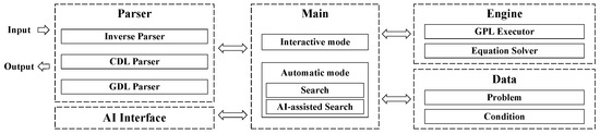 - Yu, X.; Wang, M.; Gan, W.; He, B.; Ye, N. A framework for solving explicit arithmetic word problems and proving plane geometry theorems. Int. J. Pattern Recognit. Artif. Intell. 2019, 33, 1940005. [Google Scholar] [CrossRef]