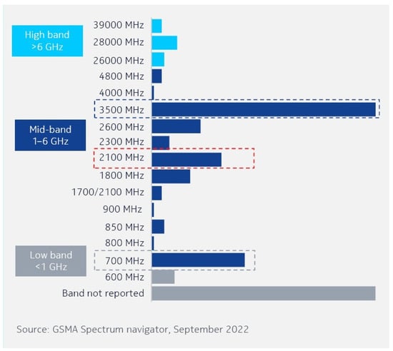 Frequency band distribution of 5G network.