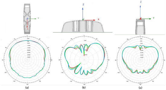 On–board roof antenna pattern. (a) The X–Y plane antenna pattern. (b) The X–Z plane antenna pattern. (c) The Y–Z plane antenna pattern.