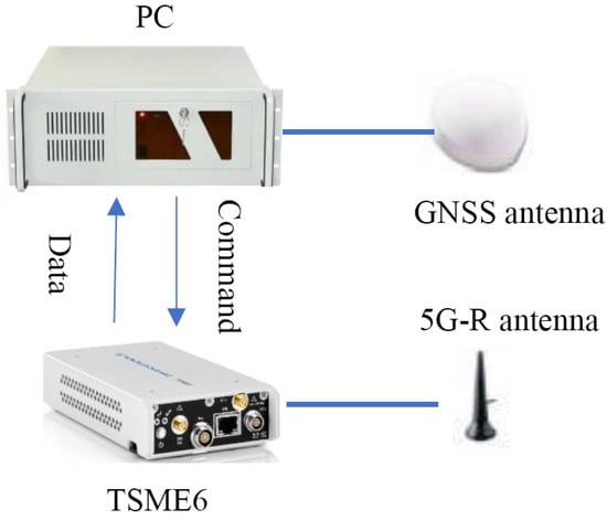 The hardware of the in-service SS-RSRP signal-based passive large-scale channel testing system consists of PC for data collection and processing, GNSS antenna for positioning and the 5G-R test scanner (R&S TSME6) connected to the 5G-R antenna, as shown in Figure 10. Of these, the 5G-R test scanner (R&S TSME6) is the key component, which can realize the real-time acquisition of the SS-RSRP parameters of the 5G-R network.