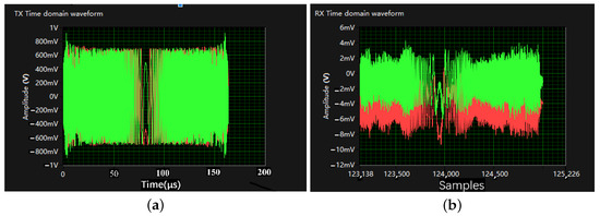 The hardware of the SDR-based 2100 MHz 5G-R channel modeling system consists of transmitting and receiving ends. The transmitting end is constitute by a PC for data collection and processing, a USRP-2954 which is connected to the 5G-R antenna as the transmitter, and a power amplifier (PA). As for the receiving end, the equipment are almost the same, except that the PA is replaced by a low-noise amplifier (LNA), as shown in Figure 13.