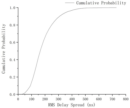 Talking about the frequency bands, the higher the frequency, the greater the path loss, and as a broad consensus, countries around the world generally allocate medium- and low-frequency resources for railway mainlines. As a result, academic research into the frequency characteristics of the railway main lines mostly focus on sub 6 GHz. Ref. [12] analyzed the performance of the Indonesia Railway Channel Model, with a frequency of 873–880 MHz and 918–925 MHz for up-link and down-link, respectively. In [13], based on measurements in railway scenarios at a frequency of 930 MHz, the authors presented a general stochastic fading channel model. The authors in [14] created a new 1.905 GHz channel model for HSTs derived from a measurement campaign conducted on the Beijing–Tianjin commercial HST in China. In [15], measurements of railway cuttings at 950 MHz and 2150 MHz were carried out, and the broadband measurement results were analyzed. In [16], measurements along the Harbin–Dalian passenger dedicated railway line of China were conducted at 2.6 GHz with 40 MHz bandwidth, based on which the single-input–single-output (SISO) channel characteristics were derived. In [17], the authors conducted measurements at 2.7 GHz and 5.6 GHz on a German high-speed track with train speed of 300 km/h, and CIR, the coherence bandwidth, as well as RMS delay are deeply analyzed. Ref. [18] focused on 3.5 GHz channel characteristics for 5G in urban rail station.