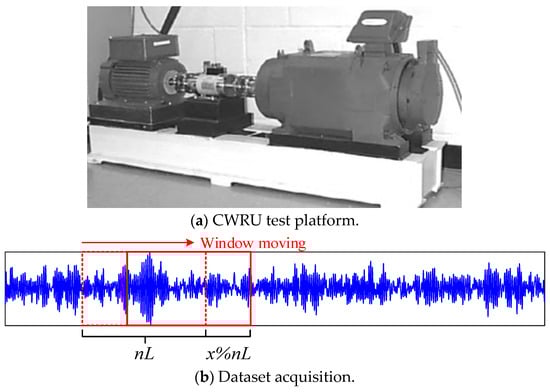 The experiments are performed under four different loads: 0 hp, 1 hp, 2 hp, and 3 hp. To assess the model’s generalization capabilities across various loads, data from the 1 hp, 2 hp, and 3 hp loads are used as the training set, while data from the 0 hp load serve as the test set. The method for generating the datasets involves segmenting the data using a fixed-size window, as illustrated in Figure 4b, and then moving the window by a x% step size to capture the next segment.