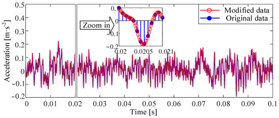 where x, u, n, and h are the sampled signal, impulsive signal of the faulty bearing, background noise, and convolution of the transmission path, respectively. Let fs denote the sampling rate and be the sampled signal sequence represented accordingly. Given an upsampling factor L, the new sampling rate after upsampling should be L∗fs. The fundamental principle behind upsampling using cubic spline interpolation [] is as follows: