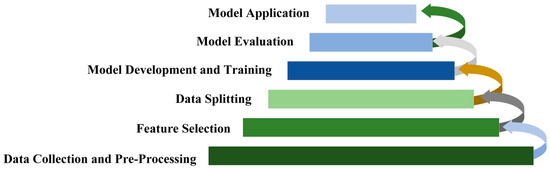 Within the scope of this study, various models were developed to estimate the discharge capacities of LIBs, each employing distinct computational strategies. The initial deployed model was based on the RF algorithm, a well-established machine learning technique. Subsequent models included those based on XGBoost, CNNs, RNNs, and integrated frameworks that combine CNN and RNN units with a GRU and LSTM to harness their respective strengths. The development of these models was meticulously structured, adhering to a prescribed sequence of steps. During the model development phase, the methodologies and procedural stages were rigorously followed as outlined in Figure 7, ensuring systematic progression and integrity in the model development.