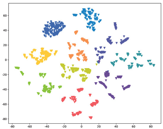 Distribution (visualized using t-SNE) of the device fingerprint extracted by Res-DFNN (without residual connections).
