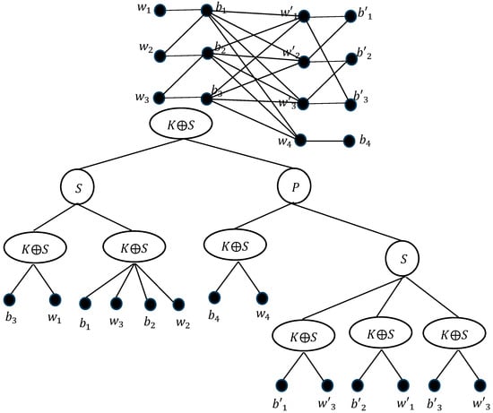 According to Theorem 1, the arrangement of components in a decomposition is important. Specifically, let be the decomposition of ; if a black vertex , then for every white vertex where , , and for every white vertex where , . Similarly, if a white vertex , then for every black vertex where , , and for every black vertex where , .
