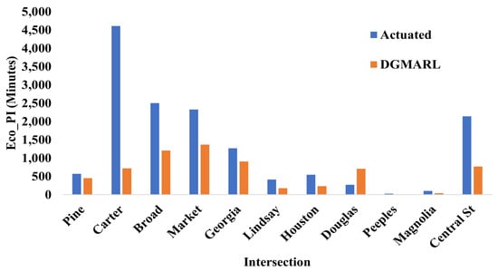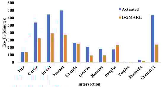 The integration of Digital Twin technology and decentralized graph-based multi-agent reinforcement learning holds significant potential for addressing the complex dynamics of urban traffic systems. By optimizing traffic signal timing through this integrated approach, this study aims to contribute to the broader goal of creating more sustainable, efficient, and intelligent transportation networks. Further insights into the Eco_PI performance measure, including relevant references, can be found in [,,,].
