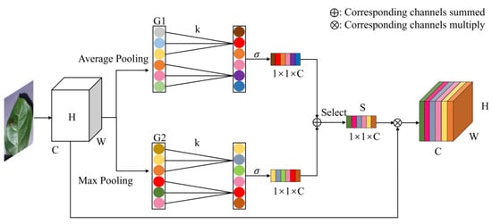 Moreover, attention mechanisms have been incorporated into machine vision, and researchers have focused on enhancing network performance by introducing various attention mechanisms to the network [16,17,18,19]. In order to synthesize two images with different styles into a single image that is not incongruous or realistic, Lu, Min et al. [20] proposed a deep learning method for coordinating the background and foreground of an image based on an improved self-attention mechanism. Aiming at the problem of tomato leaf disease identification, Deng, Hongxia et al. [21] proposed a data enhancement method named RAHC_GAN based on a GAN network; the results showed that this method can generate tomato leaves with disease characteristics and improve the classification accuracy. To address the issue of shadows in images generated by traditional data enhancement methods, Cap, Q.H. et al. [22] proposed a data enhancement method named LASSR; the results proved that this method generates images with better quality in cucumber datasets. To classify flowers automatically, Zhang, Mei et al. [23] proposed a spatial attention mechanism based on the Xception structure and used two loss functions, Triplet Loss and Softmax Loss, to improve the accuracy of the model, obtaining feature layers of images of flowers with higher precision. In order to improve the accuracy of facial expression recognition, Li, Jing et al. [24] constructed a new facial expression dataset and proposed a deep learning network method based on LBP features and attention mechanisms; experiments on the new dataset and other four datasets prove the effectiveness of the method. In order to improve the accuracy of plant disease recognition, Alirezazadeh, Pendar et al. [25] proposed a method combining a CBAM attention mechanism with a CNN and carried out experiments on two datasets; the results proved that the model combining a CBAM attention mechanism with an EfficientNetB0 network had the highest accuracy in identifying plant leaf diseases.