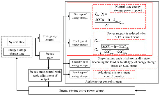 Significantly, this paper highlights the critical role of energy storage systems in active distribution networks. Classification of energy storage based on power support time and the corresponding control strategy are developed, which finally realizes the output control of the energy storage unit. The proposed method exploits the rapid response characteristics of energy storage systems, enhancing the stability of the overall control strategy.