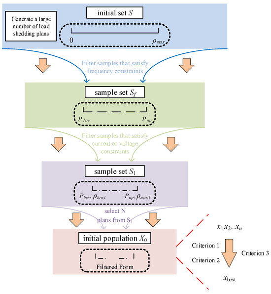 - Generate a large number of load-shedding plans randomly within the [0, ρmax] space, serving as the initial set S.