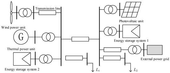 To validate the proposed strategy, a simulation model is constructed as illustrated in Figure 8, where L1 and L2 represent active loads, and the distribution network operates at a voltage of 10 kV and a frequency of 50 Hz, consisting of wind, solar, storage, and synchronous generator units.