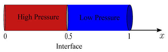 The physical problem involves the gas flow in a pipe, which is described by a system of Euler’s equations. Equations govern the motion of adiabatic, inviscid, and compressible fluids, providing a powerful model for analyzing fluid dynamics in many practical scenarios. In order to capture the speed of the rarefaction wave, the discontinuity and the shock contacts, the problem is considered in a chamber that is separated into regions with high pressure and low pressure by interface points at