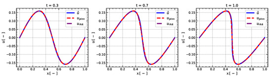 Figure 3 illustrates the comparison of the numerical solutions of the inviscid Burgers equation with its analytical solution
