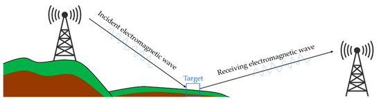 where R is the distance from the observation point to the detected target. In practical applications, the RCS is commonly represented in a logarithmic form. If the scattering target is far away from both the transmitting source and the receiving radar, significantly exceeding the incident wavelength and size of the scatterer, it can be treated as a point scatterer. In this case, the incident electromagnetic wave illuminating the surface of the scatterer can be approximated as a plane wave. Equation (9), defining the RCS, remains applicable.