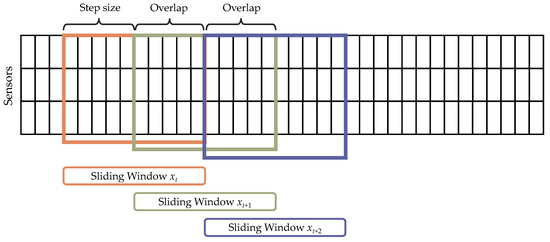 Figure 7 depicts segmenting data using the sliding window method. The sensor readings are split into segments with a fixed 10-s width. Each segment overlaps with the preceding one by 50%. This overlapping allows for a more seamless transition between consecutive segments. It also aids in effectively capturing the interdependencies that exist across sequential data points over time.