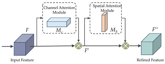 To augment feature representation and elevate HAR performance, the proposed deep residual network integrates the convolutional block attention module (CBAM) [40]. CBAM adaptively refines the feature maps by sequentially applying attention mechanisms focused on channels and spatial attributes. The architectural structure of CBAM is depicted in Figure 10.