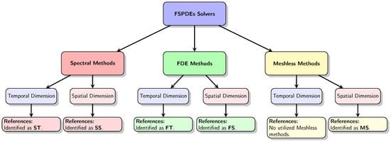 Depiction of authors’ participation in FSPDE solver classifications. ST: [35,36,37,38,39,40]. SS: [35,36,37,38,39,40,41,42,43,44,45]. FT: [41,42,44,45,46,47,48,49,50,51,52]. FS: [43,47,48,49,52]. MS: [46,50,51].