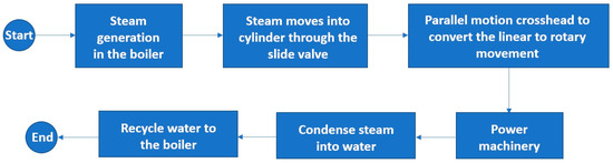 Figure 4 shows a basic flowchart of the operation of the steam engine, whose operation is described below.