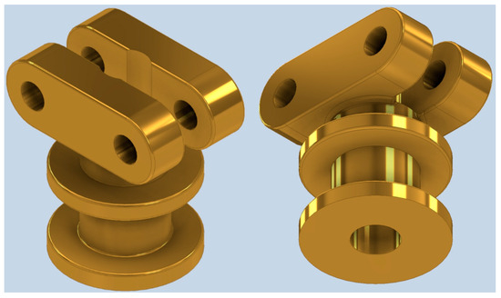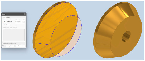 Then, the central part was removed (Figure 17b) so that assembly with the governor upper flyweight arms would be possible. As in the previous operation, a sketch with the dimensions to remove was designed. Instead of using the Boolean extrude operation, the delete operation was used.