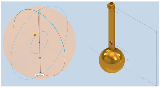 Governor upper flyweight arm: sphere sketch (left) and 3D model (right).